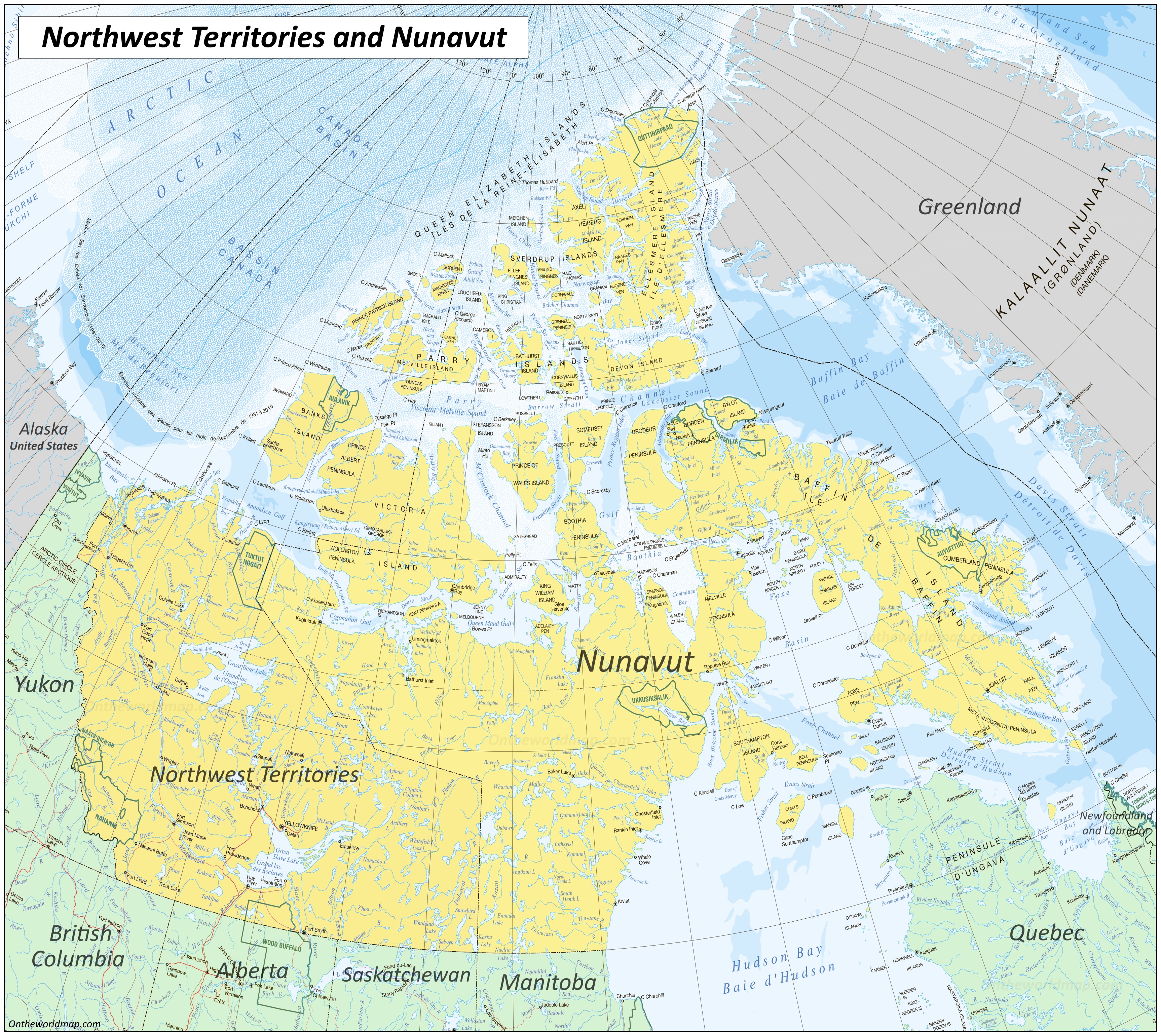 Map of Northwest Territories and Nunavut