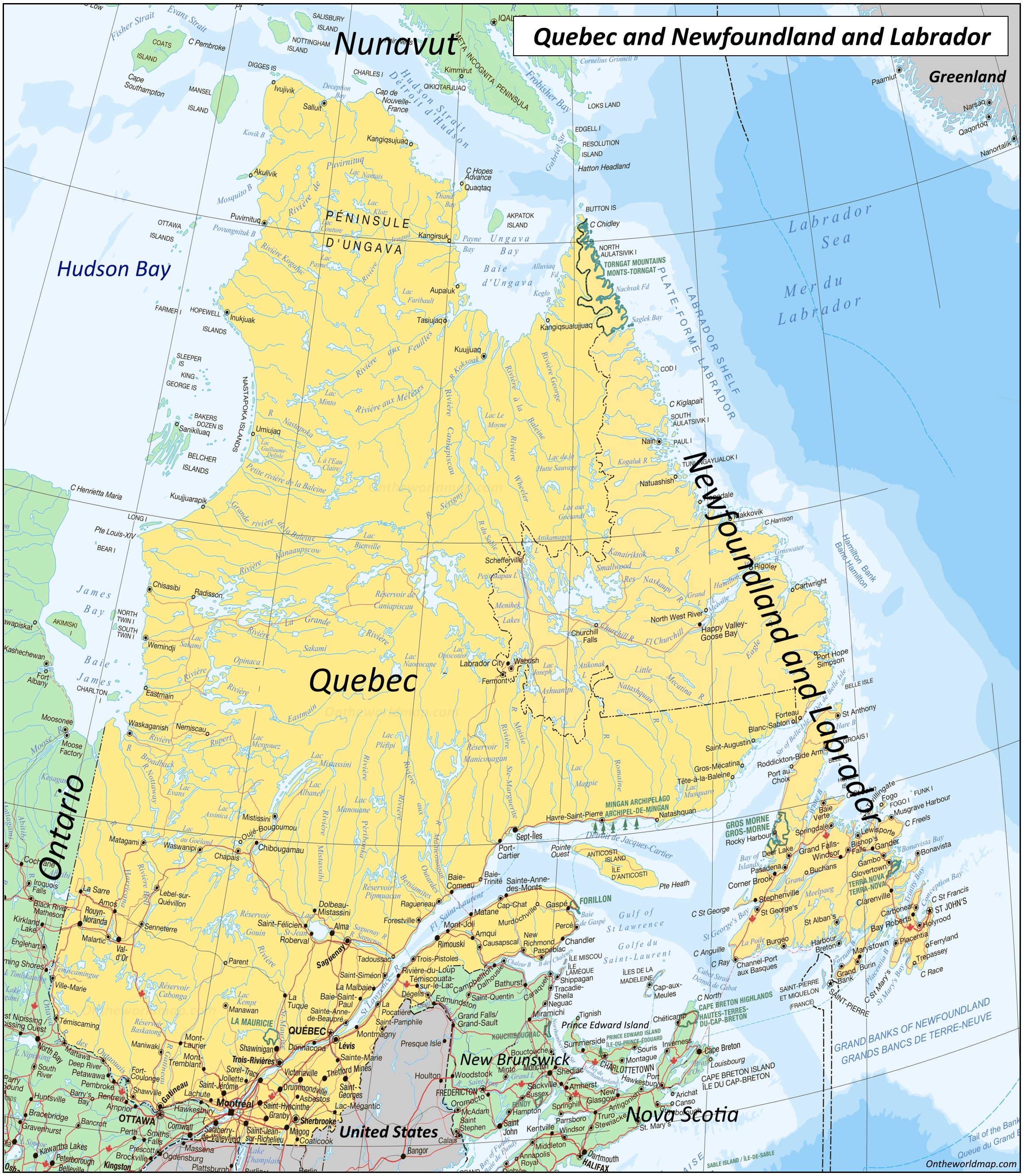 Map of Quebec and Newfoundland and Labrador