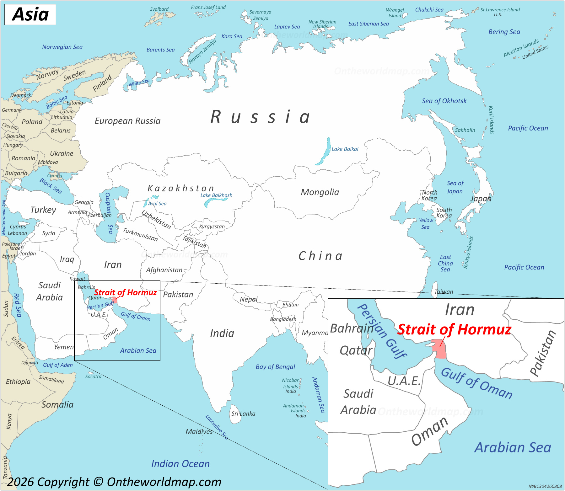 This map shows where Strait of Hormuz is located on the Asia Map.