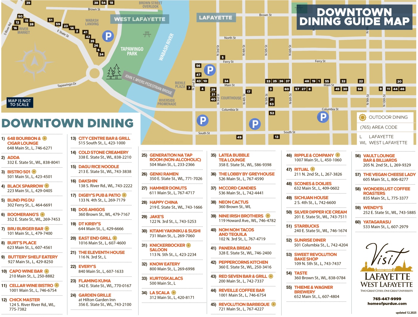 This map shows cafes and restaurants in Lafayette and West Lafayette (Indiana).