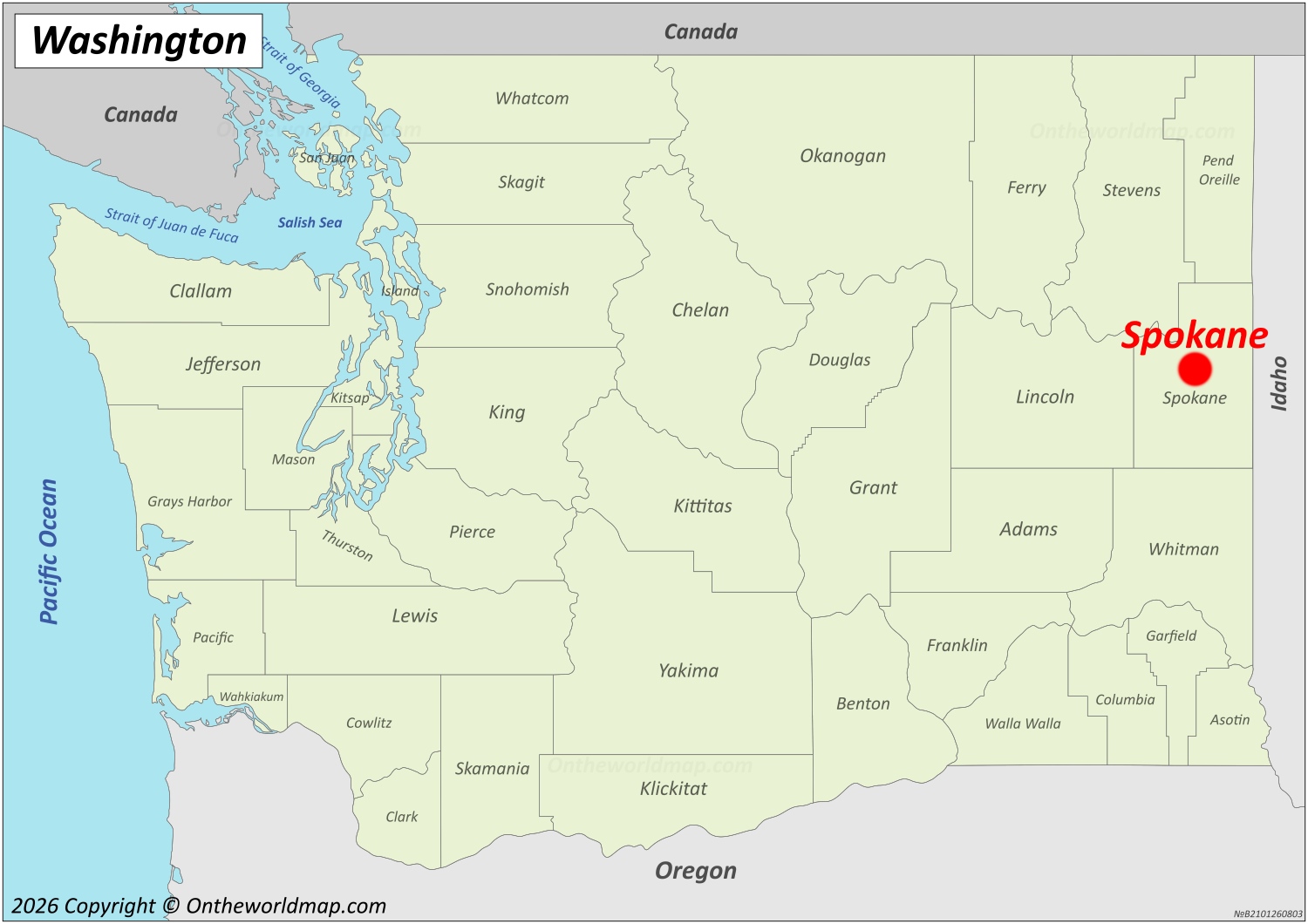 This map shows where Spokane is located on the Washington Map.