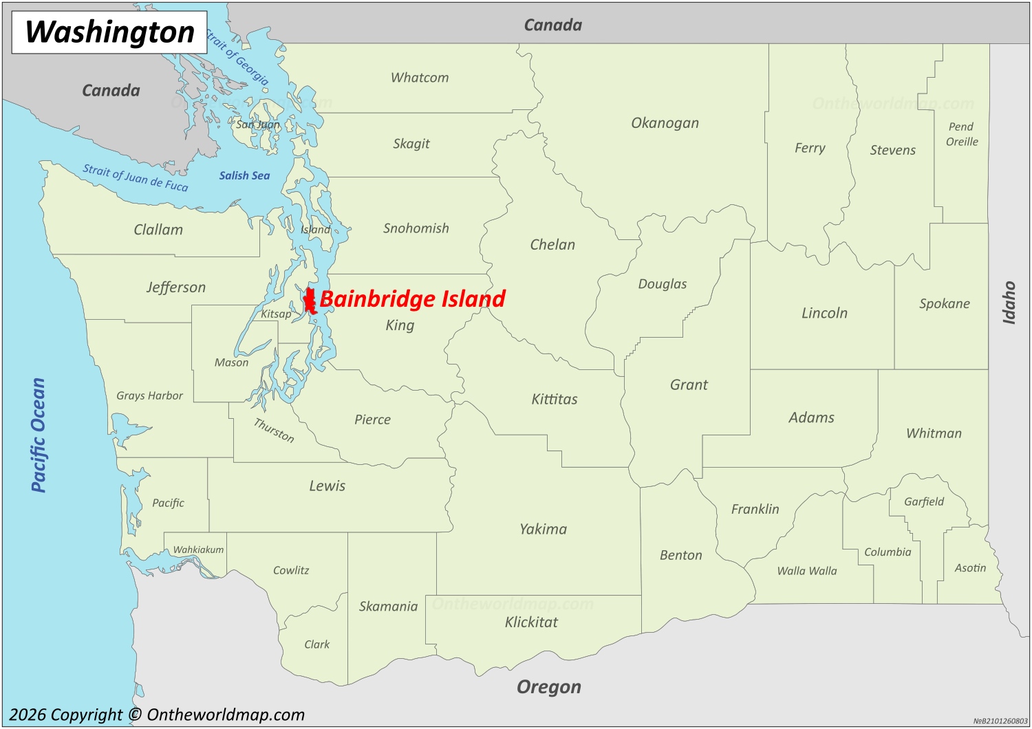 This map shows where Bainbridge Island is located on the Washington State Map.
