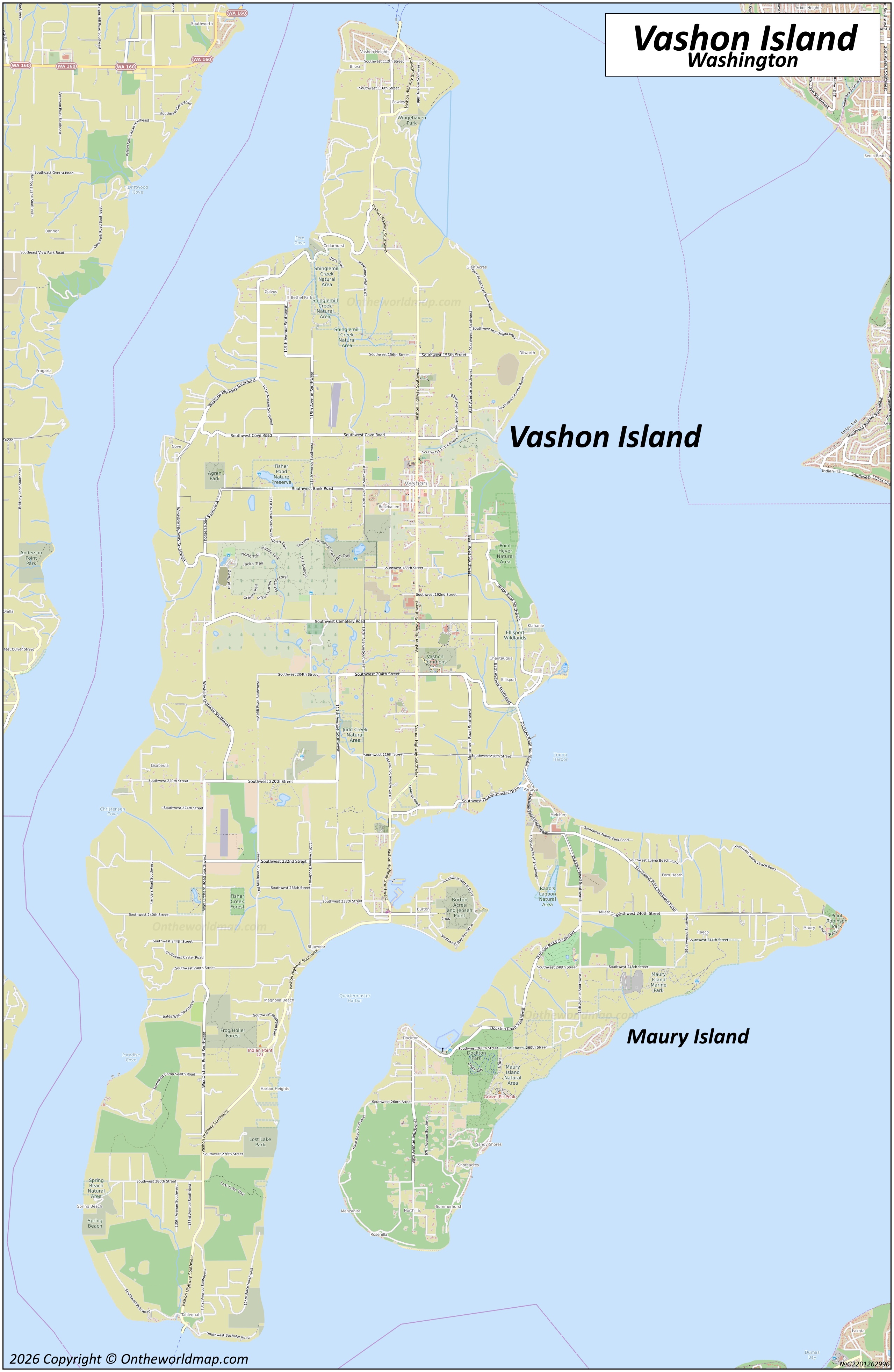 Note: No bridges connect Vashon Island to the mainland, making ferry travel essential for most visitors.
