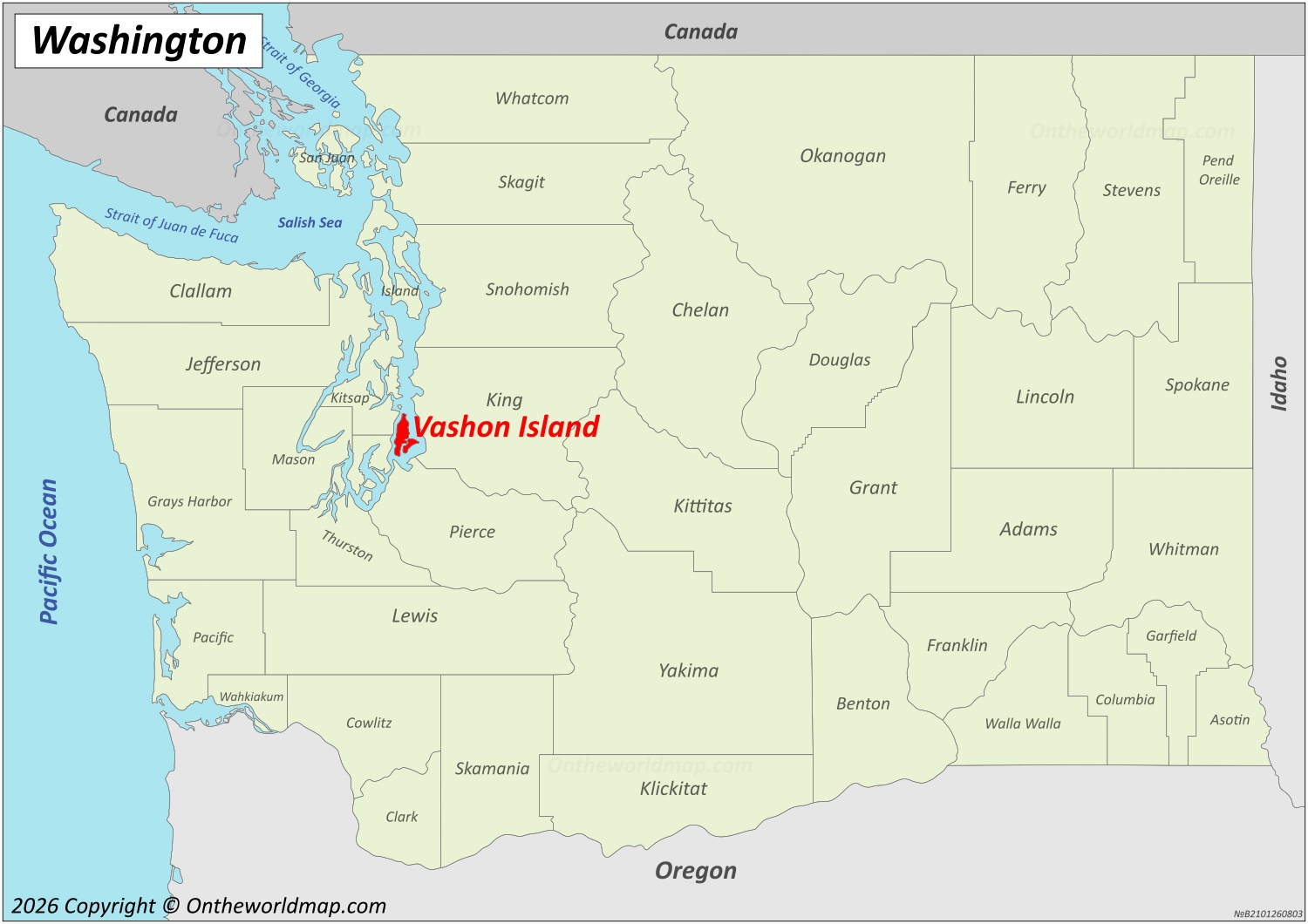 This map shows where Vashon Island is located on the Washington State Map.